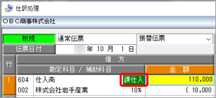 取引先ごとに仕訳する科目(仕入高など)の取引の入力