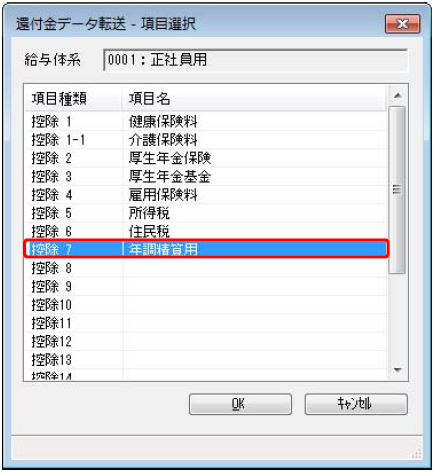 - 年調精算用の控除項目を選択し、[OK]ボタンをクリックします。