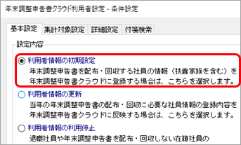 - [基本設定]ページで、「利用者情報の初期設定」を選択します。