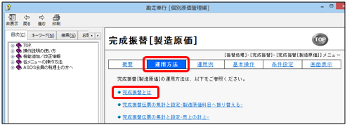 - [完成振替[製造原価] - 条件設定]画面で[操作説明]ボタンをクリックします。