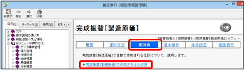 - 「完成振替[製造原価]で作成される仕訳例」をクリックします。